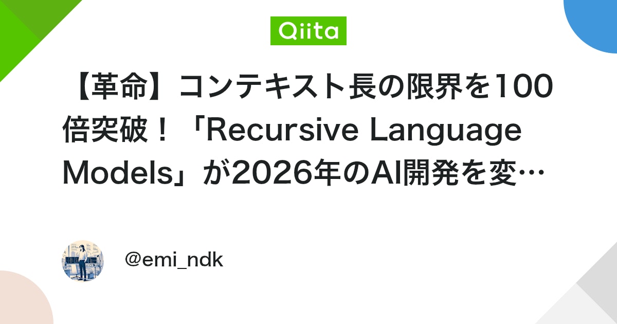 MIT発のPrime Intellect社が発表した「Recursive Language Models(RLM)」は、従来のAIが抱えていた「コンテキスト忘却」問題を解決する画期的な技術です。RLMは、AI自身が自分自身を再帰的に呼び出すことで、理論上無限のコンテキストを処理できるという特徴を持ちます。従来のLLMは、一度に全てのコンテキストを処理しようとしますが、その限界を超えると性能が低下し...